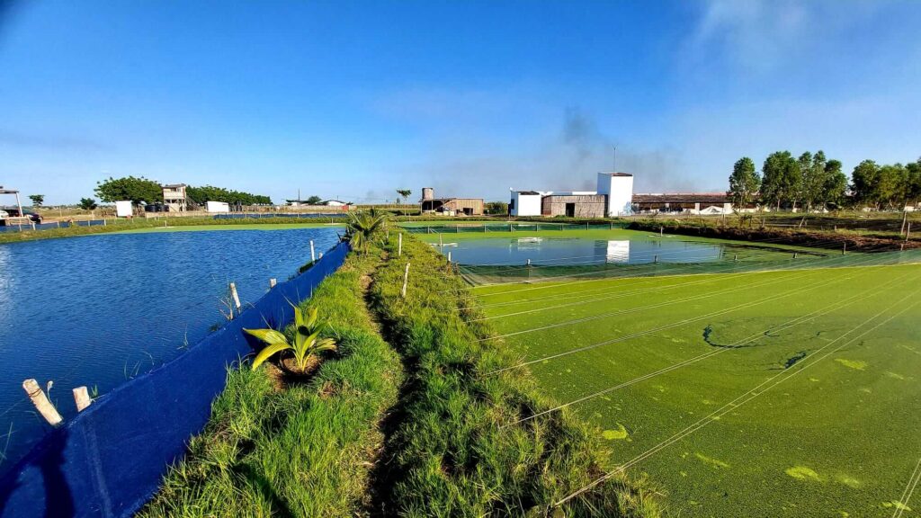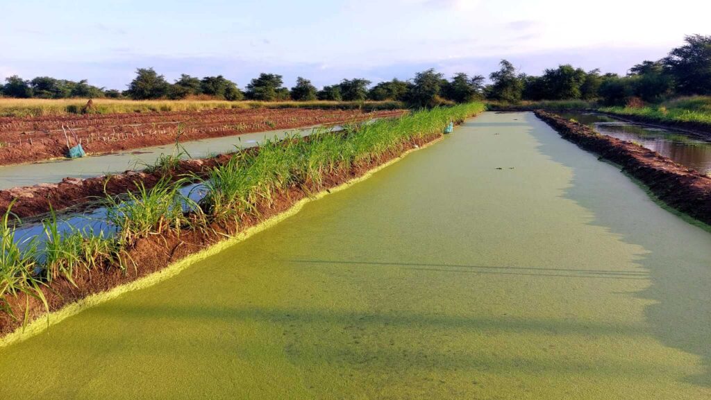 Water lentils produce 10-15 times more protein per hectare than soybeans, with no arable land needed. Ponds are built on land unfit for any other food use.